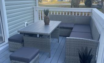 Nestled in Sneads Ferry, this delightful coastal, beach cottage offers 3 beautiful bedrooms, master suite with a Queen, bedroom 2 with two queens, bedroom 3 with 2 full bunkbeds and twin trundle, 2 lovely full bathrooms, and essential amenities: all new furniture and appliances including full-sized washer and dryer, high-speed WiFi, grill, lovely outdoor dining furniture on a relaxing deck, large front porch with rockers to enjoy morning coffee, fully stocked kitchen with coffee and tea pots, toaster, dishwasher oven with air fryer etc, lots of games, and central AC/heating. The home is in walking distance to a gelato cafe with the best gelato, sorbet and other delicious treats! Take in one of their cooking classes if available during your stay! The cozy atmosphere and comfortable furnishings make it a relaxing retreat for guests looking to unwind and indulge. The home is a few miles from Topsail Beach. We're happy to assist with any questions while you stay at our cottage.About pets:No pets allowed.About checkOut:Check out before 10:00 AM.About children:Children allowed: ages 0-17.About customRules:There is no smoking in this home. There will be at least a $500 fee charged to the card used for booking if anyone smokes in the home..There are no pets allowed in the home. There will be at least a $250 fee charged to the card used for booking if a pet is brought into the home..About checkIn:Check in after 4:00 PM.About smoking:Smoking is not permitted.About minBookingAge:Minimum age to rent: 21.About events:Events allowed: family gatherings.Maximum event attendees: 10.