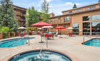 Enjoy a soak in one of our outdoor hot tubs or heated pool after an invigorating day on the slopes. Our workout facility includes men's and women's spa type locker rooms with dry saunas and steam rooms.