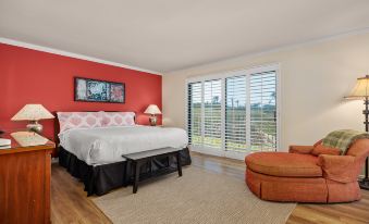 • Primary bedroom features a, king-size bed, stunning ocean views, plantation shutters, and a walk-in closet