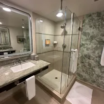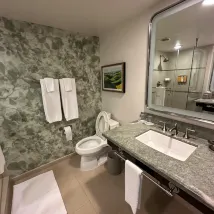 Мы приехали поздно ночью. Номер был отличный, у нас было две ванные комнаты и отдельная гостиная. Кроме раковины в ванной, слив был засорён, и всё было залито водой. Но у них не было похожего номера для нас. Поэтому мы не стали менять номер.