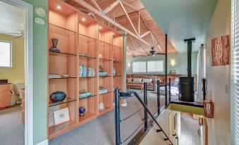 The main floor is an open area with the kitchen, conversation area, dining table and recently updated in partnership with Sanctuary for Life, a non-profit providing special care to caregivers. The hall leading to the upstairs also brings you to a half-bath and the laundry room area with an infra-red sauna.