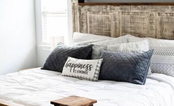 Come and enjoy small town America. Our two street, quiet neighborhood has concrete roads, sidewalks, street lamps and all. This home is a 4 bed, 4 bath 2-story home. Two rooms are upstairs with their own individual en-suite bathrooms and separate staircases as well (the rooms do not connect at all- great for added privacy for multi families traveling). One upstairs room has a queen bed and large bathroom with full tub/shower. Other upstairs bedroom has two double beds and an en-suite bathroom with a walk-in shower. Downstairs has the primary bedroom with a king size bed, large bathroom and large tiled walk-in shower. There’s also an additional twin bed, that is stored in the closet, that can be pulled out to accommodate a young child who may still want to sleep in mom and dad’s room! (My youngest was like that! Lol) The other downstairs bedroom has a twin bunk bed with a twin trundle and a full size bed. This room could accommodate 4-5 children easily. This room also has a connecting bathroom as well. Each room has its own bathroom which is great for privacy when traveling with others.