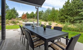 Single-family house, built in 2022. 950 m from the sea. Private: natural state property 3'659 m2. Terrace (50 m2), children's playground (swing). In the house: sauna, washing machine. Parking at the house. E-charging station. Grocery 1.4 km. Golf course 3 km. The owner does not accept any youth groups. "Pejo" - 950m from the sea", 4-room house 155 m2. Object suitable for 10 adults + 1 child. Living room with TV. 1 room with 1 double bed. 1 room with 1 double bed. 1 room with 1 double bed. Open gallery, 1 room with 2 beds. Kitchen (oven, dishwasher, 4 induction hot plates, microwave, freezer). 2 showers/WC. Terrace 10 m2, roofed. Facilities: children's high chair, baby cot. Internet (WiFi). Please note: non-smokers only. Maximum 1 pet/ dog allowed. Bookings accepted for holiday purposes only. 760-16995