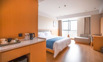 訂的豪華大床房,開門進去都驚呆了,超大的房間,第一次住到50多平米的大床房,很寬敞,房間佈置陳設也很簡約舒適,零食區有吃的喝的可免費選擇。