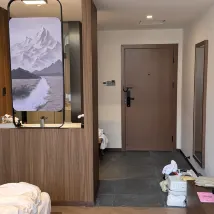 Комната была великолепна! ! ! Я хотел бы порекомендовать этот отель каждому другу, который приезжает в Цзючжайгоу. Это недавно открывшийся отель с чистой санитарной средой, подходящей температурой подогрева пола, хорошим стилем оформления номеров и отличным начальником. Я очень доволен бронированием номера. такого качества в западной части Сычуани, и он просторный. Занавес представляет собой снежную гору, но в тот день не было солнца, и вершину снежной горы не было видно. В любом случае, я был доволен!