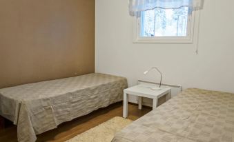 This semidetached house located in a silent place in Vuokatti. Completed in 2010. Living area 114 m²; combined living room & kitchen, sauna (electric heating), washroom with two showers and toilet. 4 bedrooms: three bedrooms with twinbed and one bedrooms with separate beds. Two extra beds in bedrooms and one sofabed (140 cm) for 1-2 pers, total bed places for 10+2. Shower/toilet also on the 2nd floor.
