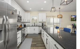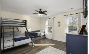 This space can comfortably sleep 14 and has 4 full baths, including a tub. Plentiful amenities make your stay cozy and convenient, including HD cable and WiFi, a full kitchen with breakfast bar, full-size laundry machines, books and games. Each bedroom has a smart TV, plus cable TV in the living room. Enjoy a cookout with friends and family using the gas grill and gather for your morning coffee on the front porch. There is also an attached garage with driveway, and room in the street front, so parking is a breeze!About pets:No pets allowed.About checkOut:Check out before 11:00 AM.About children:Children allowed: ages 0-17.About checkIn:Check in after 3:30 PM.About smoking:Smoking is not permitted.About minBookingAge:Minimum age to rent: 22.About events:No events allowed.
