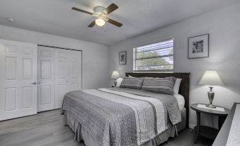 This cute cabana is newly renovated and features 2 bedrooms, 1 bathroom, large fully fenced yard on a corner lot and a one car garage! It also has amenities such as washer & dryer, stocked kitchen, smart television and spacious driveway for parking multiple vehicles. Whether you are traveling for an extended period of time or need a quick sunshine filled getaway... come stay at our family friendly Coquina Cabana! We would love to host your trip! Pets are welcome with pre approval and fee paid.