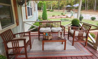 A beautiful Prime Retreat getaway on nearly 3 acres of private property. This first-class stay offers privacy, comfort, luxury indoors/outdoors, and top-notch cleanliness. Free Wi-Fi, satellite cable, office space, reading material for relaxation/enjoyment, firepit, grilling, nature trail, etc. Clean and safe for arrival and ready for visiting guests.About pets:No pets allowed.About checkOut:Check out before 11:00 AM.About children:Children allowed: ages 13-17.Only children 5+ are allowed due to safety reasons.About customRules:Guests are not allowed to burn incense in the home, use vaping, e-cigaretts, or use of any illegal drugs or substance on the property at any time..No hunting is permitted on the property or use of weapons. Illegal downloads on the guest computer are forbidden and will be reported to local police.,This property is not to be used for filmmaking, TikTok, or for use on any social media platforms without the authorized written consent of the owner..About checkIn:Check in after 3:00 PM.About smoking:Smoking is not permitted.About minBookingAge:Minimum age to rent: 21.About events:No events allowed.