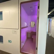 I was pleasantly surprised with the cleanliness of the pods and how comfortable it was. Perfect for backpackers and short trips. The only downside is that you can only unlock the doors with a QR code and if your phone battery is dead, you’re locked out. They also have ambient lighting and sound in the pods but there is no sound proofing so you will hear footsteps at night.