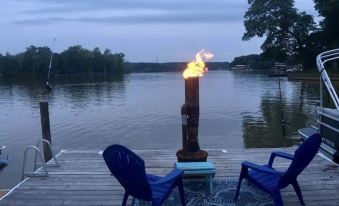 Come enjoy this 2 bedroom, 1 bath waterfront property with amazing views of the morning sunrises. It is located in a quiet cove with open water views, private boat ramp, pier, boat slip, kayaks and paddle boards. Swim ladder and fishing on the dock. After a day on the lake come back and relax by the fire pit, enjoy the gas grill with table and chairs on dock. Cornhole boards are available upon request.