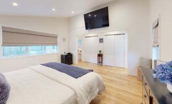 Exquisite and Pristine Home in the Hamptons. Cathedral Ceilings, Skylights in living room. A 65" TV for those cozy movie nights. Open Floor plan enters into the dining room & Fully Stocked Chefs Kitchen w/ Hi End Stainless Steel appliances.
