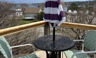 The Upper Deck unit was bright and sunny (as were all the days we visited in mid September!). It is the perfect location to walk to the little village to shop or eat - or to catch the wonderful and convenient Explore Bus. Despite its close location to town, the setting is quiet, with views of the harbor. We also enjoyed being able to bike to Seawall and beyond to Bass Harbor lighthouse. The unit itself was very clean, the bed comfortable, loved the electric "fireplaces" under the TV in living room and bedroom. We would definitely stay here again!