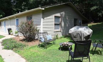 This history themed studio apartment sleeps 5. The apartment includes a queen, pull out queen sofa bed, optional roll out twin bed, a full kitchen, one bathroom, full laundry area, with areas for relaxing, bonfire and a gas grill. The apartment offers cozy historic decor including facts about Spartanburg and Roebuck. It's charming and includes a large room with designated area for the bed and living area, a kitchen and separate bath. We are minutes from downtown Spartanburg.