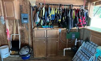 Bring your boat as there is deep water frontage at the boathouse and a slip for your boat. Paddle the cove and explore in one the four adult kayaks, two