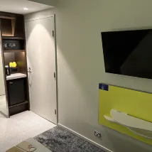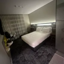 Чистый, но очень маленький номер (по крайней мере мой). Немного маловат. Дверь душа также является дверью в ванную комнату!