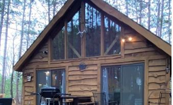 Crystal Cub Chalet is ready for your relaxing get-away! Enjoy this comfortable cabin nestled in 2 acres of pine trees. Designed by 2 Michigan artists, this cabin has many unique and creative finishes. 2 miles from Crystal Mountain Resort, steps away from snowmobile trails, fishing, and many other outdoor adventures. Relax in the natural surroundings while enjoying s'mores around the campfire or a cocktail around the fire table on the deck. Perfect for families, couples or friends!