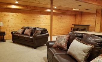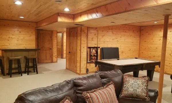 Basement level includes 3rd bedroom with queen bed and full bath. Also basement includes a gaming room with pool table, ping pong table, darts and theater area with a 75" TV and sound system. Also in same area you will find a bar with 4 chairs where you can enjoy your drinks while watching movies or playing games. Basement includes 2 queen sleeping sofas in case if you will have bigger group.