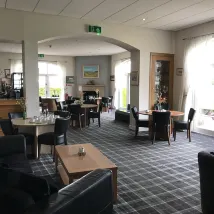 We recently stayed at this hotel for 4 nights. We chose it for its location of being close to family in Leuchars but primarily because it was dog friendly. We didn’t on this occasion use the golf facilities. We stayed in a room in one of the lodge buildings which was ideal as it was next to the golf course and ideal for dog walks or just letting him out supervised to do his business! The room was comfortable and clean and with all the essentials needed for a mini break. The breakfast in the hotel was very good some days buffet and some days ordered from the menu. We ate an evening meal in the hotel several days and whilst the menu choice is not extensive the food was good quality and value. With having the dog all our meals were in the bar area which was fine for us as you have lovely views over the golf course and it was very relaxed. All the staff were friendly and helpful providing a great level of service. We would definitely come back and stay again here. A good location for exploring St Andrews, Dundee, Carnoustie & many beaches on this coast