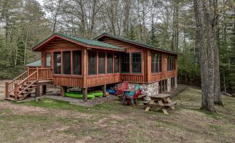 The kitchen is fully appointed with an island counter and everything you’ll need to entertain during your vacation. Relax in comfort around the fire pit after a long day of enjoying the property’s sandy and private dock. Secure your watercraft safely or fish right off the dock while enjoying the eagles soaring overhead. End the perfect Northwoods day with a picnic under the stars along the lakefront while taking in the starlit sky.