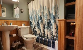 The lower level consists of one bedroom and one bathroom as well as a spacious rec room. The large rec room has a TV area with sleeper sofa, and full wall of sliding glass doors that connect you to the lower level deck. On the lower level deck, guests will enjoy a covered sitting area and porch swing.
