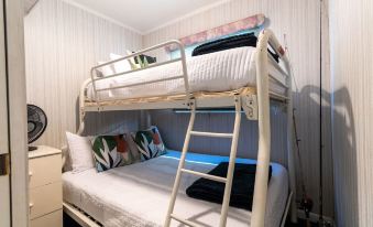 Bunk Bed Full/Twin: The second bedroom is furnished with a bunk bed, with a full-sized mattress on the bottom bunk and a twin-sized mattress on the top bunk.