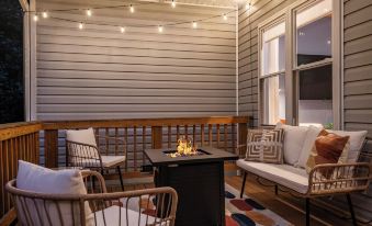 - Enjoy the fire pit on the back deck surrounded by beautiful trees and string lights