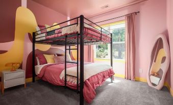 Vacation in style at the most unique property in Raleigh! Boasting 4 bedrooms and 7 beds, this brand new home is perfect for your family or large group. Enjoy a larger home on a private .7 acre lot surrounded by nature, while being <15 min from downtown! Each room has a unique yet comfortable design that has been thoughtfully curated by local NC artists. We promise you haven't experienced anything like this before!