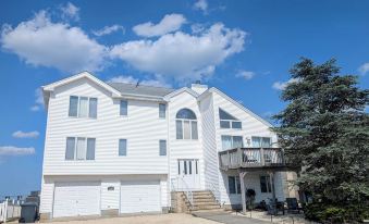 CausewayView is a spacious, six-bedroom, four-bathroom home on the bay in the exclusive East Pointe section of Beach Haven West. Ideal for families or groups up to 12 guests, this three-story retreat offers breathtaking views of Barnegat Bay, Long Beach Island, and the Causeway Bridge.