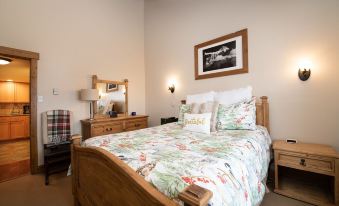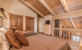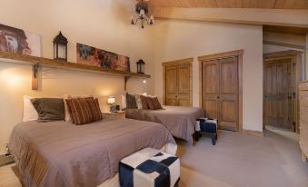 On the main level, the master bedroom has a queen bed, an adjacent full bathroom and a beautiful view of the valley and Emerald Mountain with a flat screen TV, Roku, and cable. The open loft area has two double beds and a second full bathroom. The loft also has a TV with cable. Both bedrooms have large closets to store your belongings during your stay.