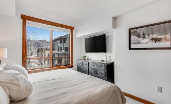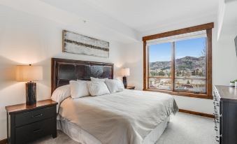 Trailhead Lodge 3110 is a luxurious one-bedroom condo with recent upgrades including new tile flooring, carpeting, and new furnishings. It features a fully-equipped kitchen complete with granite counters and stainless steel appliances including new kitchen wares. The living area has comfortable furnishings, a cozy gas fireplace, a new 65' smart TV, and access to a private balcony. The condo has free WiFi and a washer and dryer with detergent provided for your convenience. The main bedroom features a new king bed with a down comforter, a 47' flatscreen TV, and an attached bathroom with double vanity sinks, a large soaking tub, and a walk-in shower.