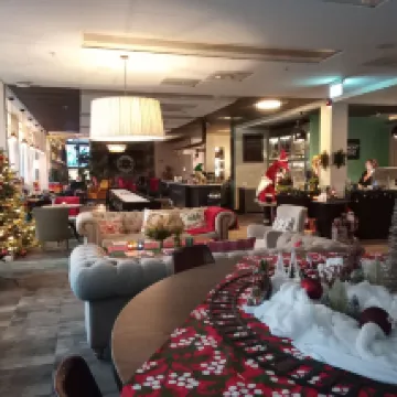 Я останавливалась там незадолго до Рождества, и вход был красиво украшен.
