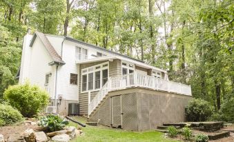 This is probably our favorite house to-date. Beautiful sunroom, master on main, and the best appointed house we've stayed in. Everything, from the coffee bar to the kitchen to the bathrooms, are well stocked with nicer things than we usually find in VRBO rentals (no mainstays china!) Very quiet and nestled in the woods for a relaxing stay.