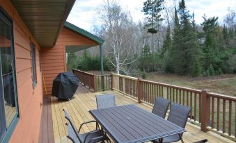 After a full day on the ATV/Snowmobile/Bike trails, taking in the Lakes, or exploring the quaint downtown area shops settle back into the cabin & cook up a wonderful dinner in a fully equipped kitchen with granite counters, solid oak cabinets with GE Profile Slate appliances... while overlooking your private wooded backyard where you are sure to see active wildlife. If you aren't up to cooking the area has many local restaurant that will take over the cooking for you!