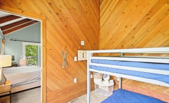 Tucked into the trees with year-round views of Beech Mountain, Snow Place Like Home is a three-level cabin less than a 10-minute walk from Sugar Mountain Resort and less than a mile to alpine coasters, ropes courses, and gem mining. Inside, you’ll find a king suite with its own deck, a loft with double beds and vintage arcade games, and a lower level game room that opens to your own private hot tub.