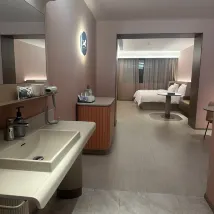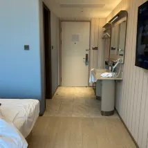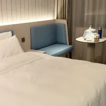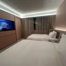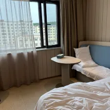 Моё первое впечатление: отель новый, кровать и подушки удобные, и он находится примерно в 12 минутах ходьбы от станции высокоскоростной железной дороги. Спуск значительно ускоряет путь. Завтрак был уютным. Вонтоны были твёрдыми и свежими, вероятно, их испекла сама тётя. Сотрудники стойки регистрации были дружелюбны и отзывчивы, а четыре бутылки воды в номере красноречиво говорили о заботе отеля. Поскольку отель работал во время выставки, цена была выше обычной. В целом, это был хороший выбор, и я обязательно остановлюсь здесь снова, когда буду в Суйфэньхэ.