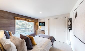 Escape to this tranquil Fully Renovated three-bedroom condo in the bustling Sun Valley Resort. Enjoy this rental all four seasons with its walkable location to the Sun Valley Village and proximity to downtown Ketchum. Exclusive access to the Sun Valley Inn pool and Olympic pool. Wide windows, high ceilings, and warm colors create a spacious, welcoming atmosphere. Relax after a long day in front of the gas fireplace. Outside, take in views of the stream, pond, and green space from the comfortable-sized deck. Amenities include WiFi, two TVs with cable, and DVR/DVD players. Walk, bike, or drive to downtown Ketchum restaurants, however, all the necessities are available in the kitchen to make a meal at home. With three bedrooms, six guests can stay in this home. The king-size primary bedroom is located on the first floor. Kids and adults can enjoy the two bedrooms upstairs with two twin beds in the upstairs bedroom and two twin beds in the other bedroom. The twin beds may be combined into a king bed upon request, and a sofabed in the living room will sleep any remaining guests.