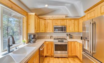 Коттедж находится в районе Санривер, Бенд. Аквапарк и центр отдыха Sunriver Homeowners и Торгово-развлекательный центр The Village расположены в 15 минутах ходьбы. Коттедж — вариант с прекрасным расположением: Sage Springs Club & Spa находится в 2 км, Поле для гольфа Sunriver Resort — в 2,1 км от него.