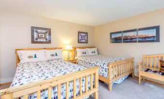 Head downstairs to find two additional bedrooms. Bedroom one has a queen bed, TV and access to the home's private hot tub. Bedroom two has two full-sized beds, a TV and also has access to the hot tub. A full guest bathroom, and laundry room round out this level.