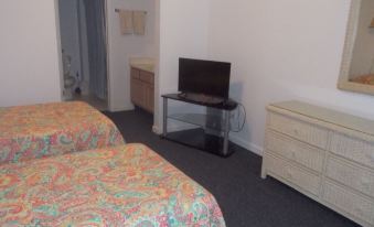 Accommodations: 2 Bedrooms 2 Baths: The master bedroom includes 1 king size bed, cable television, large closet, iron & ironing board, and a full bathroom with an outside vanity area and a built-in hairdryer. The second bedroom includes a two twin beds, cable television, coffee maker, & a full bath with an outside vanity area & built-in hairdryer. This ''guest suite'' can also be accessed from a separate exterior entrance. All sheets, towels and other accouterments are provided for your convenience. New flat screen TVs in the bedrooms. Just a quick 1-minute walk from the building brings you to the Activity Center. On the east side of the building is the 9th hole of the Dan Maples golf course.About pets:No pets allowed.About checkOut:Check out before 11:00 AM.About children:Children allowed: ages 0-17.About checkIn:Check in after 4:00 PM.About smoking:Smoking is not permitted.About events:No events allowed.