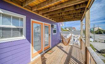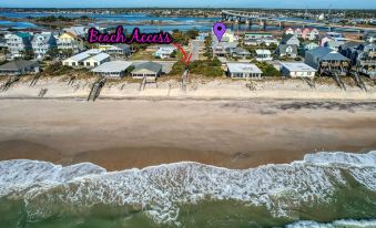 ⊚ View & Beach access: Step out onto any of our decks and enjoy views of the ocean. While not directly on the oceanfront, this beach house boasts a fantastic view from its second-row location. You can also stroll out onto the beach from the public beach access across the street! Enjoy coffee on the hammock and take in the sunrise while watching dolphins play in the surf.