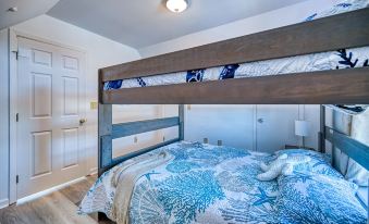 ⊚ Bedrooms: The master suite is on the main living area on the first floor and offers a king bed, reducing the number of trips down the stairs. The second floor has two bedrooms. The Queen bedroom has a private deck and ocean view, providing you with a private space to rest and relax. The Queen over Queen Bunk Bed room, which boasts a large queen bunk, is thoroughly enjoyed by both the young and the young at heart. It also provides a great experience for a family that wants to try a family sleep time together.