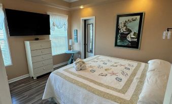 The house was beautiful and very clean. We loved the screen in patio. Mark and Diane answered all my questions and kept checking on us if we needed anything. We will definitely be back next year. Our dogs loved the golf cart.