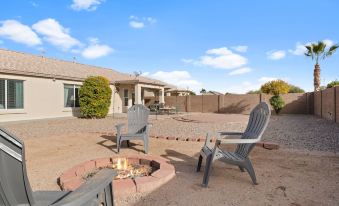 Spring training gem. Just minutes from Surprise Stadium, home of the Texas Rangers and Kansas City Royals spring training. Enjoy some games, then come back and relax in this spacious split floor plan. Spend time in the big backyard and hang out by the wood firepit. Lots of great restaurants and entertainment nearby. Very quiet and clean neighborhood.About pets:Pets allowed: dogs less than 50 lbs per pet (limit one pet total).About checkOut:Check out before 10:00 AM.About children:Children allowed: ages 0-17.About checkIn:Check in after 4:00 PM.About smoking:Smoking is not permitted.About minBookingAge:Minimum age to rent: 25.About events:No events allowed.