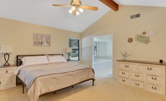 * Four Bedrooms: Cozy linens, ample storage, and comfortable beds (king, two queens, two full-size) for a restful night's sleep.