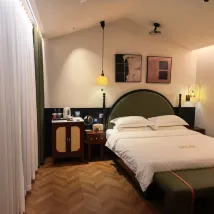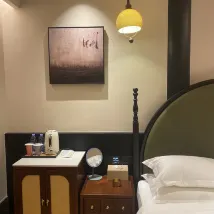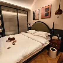 Этот отель находится в переулке. Весь отель представляет собой двухэтажное здание в западном стиле. Номера и общественные зоны оформлены с большим вниманием к дизайну. Несмотря на то, что удобства в каждой комнате одинаковы, дизайн имеет разный эффект. Общий стиль уютный. Это экономически эффективно. Я случайно забронировал этот отель вместе с друзьями. Цена была более 200, но удобства и детали номера превзошли мои ожидания. Они проделали хорошую работу и очень внимательны к деталям. Когда я открыл шкафчик под раковиной и увидел аварийный комплект, я все равно выбрал бы этот отель в следующий раз, когда приеду в Сучжоу. На стойке регистрации приятно пахнет, в номере тоже приятно пахнет. В каждом номере есть небольшая терраса, а также телевизор, на котором удобно смотреть фильмы. Подходит для путешествий с друзьями и молодыми парами. Терраса на первом этаже особенно удобна для того, чтобы посидеть, пообщаться и выпить немного вина. В целом впечатления и комфорт были очень хорошими. Внимательность сотрудника ресепшена и детали оформления номера создали у меня более благоприятное впечатление о Сучжоу! (Я правда не говорю, что комфортабельный номер и хороший отель действительно заставят меня написать серьезный отзыв хахаха)