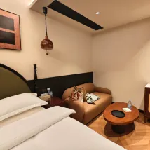 С того момента, как я зарегистрировался, обслуживание, предоставленное мне дамой и братом на стойке регистрации, было очень внимательным. Мой чемодан был очень большим и тяжелым, поэтому женщина помогла мне отнести его наверх и даже приготовила приветственный подарок. Этот сервис действительно можно сравнить с сервисом пятизвездочного отеля.