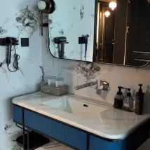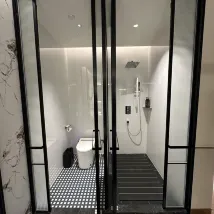 Когда мы вошли в номер, ванная комната была не убрана как следует — вокруг унитаза валялись волосы, а дверцы казались хлипкими. Вдобавок ко всему, в туалете постоянно булькало. Нам пришлось вызвать персонал, чтобы исправить ситуацию, и они объяснили, что проблема в общем напоре воды, характерном для всех номеров.