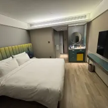 Мне очень нравится серия отелей «Мэнсинь». Я останавливался там во время предыдущей поездки в Уси и снова во время поездки в Сучжоу. Расположение отличное: метро примерно в 500 метрах, а улица Гуаньцянь находится прямо под отелем, откуда открывается прекрасный ночной вид. Обслуживание в отеле превосходное! Для доставки еды используется небольшой робот, а более крупные блюда официанты приносят прямо к двери.