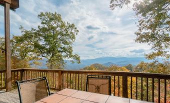This beautiful Appalachian style log home sits high atop the mountain with spectacular long range views. Picture yourself enjoying a cup of coffee on the expansive deck while you watch the mist of the Great Smokys burn off and reveal the mountains below one by one. Finish off your day in the mountains, watching the sunset as the stars illuminate in the sky, immersing yourself in the hot tub right on your own deck. You'll feel your body shedding the stresses of everyday life, and remembering why you went on vacation. To relax, and get away.